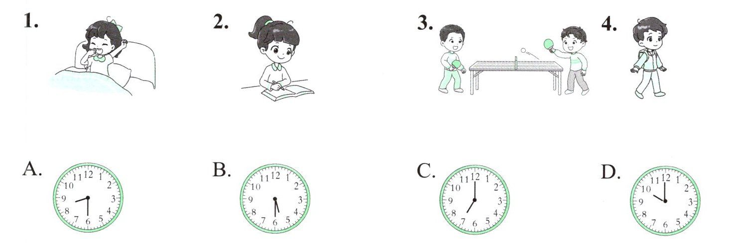 I get up at seven o'clock. She does her homework at half past five. We play table tennis at ten o'clock. My brother goes to school at half past eight.