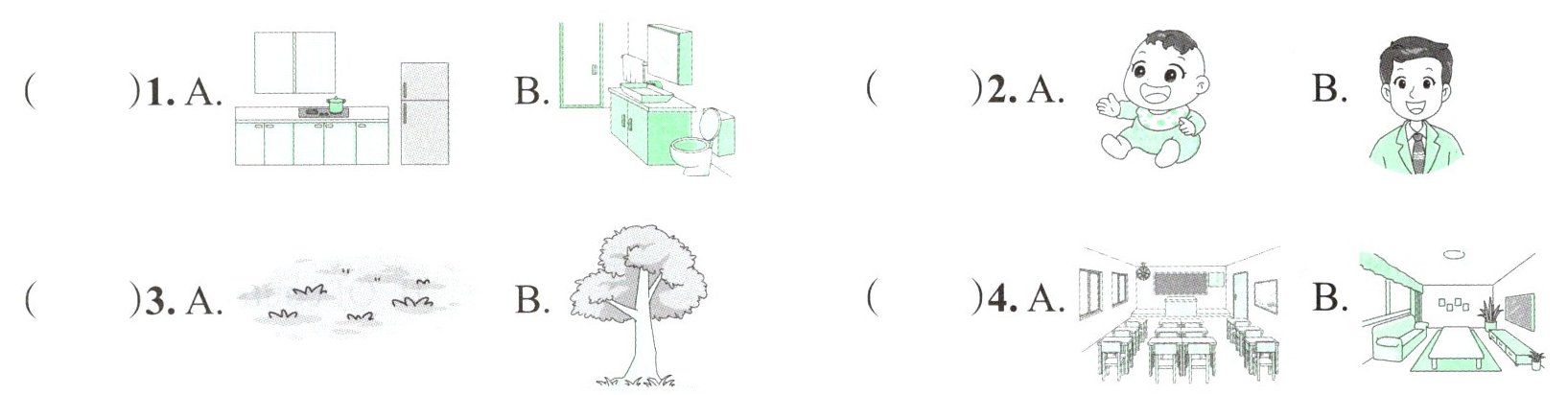 )2. tree A. grass B. jump C. zoo(