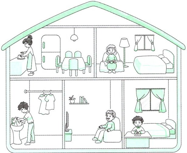 My name is Mike. Yesterday was Sunday. My family were all at home. My grandma read a book in her bedroom. My grandpa watched TV in the living room. My father washed clothes in the toilet. My mother made a cake in the kitchen. What about me? I did my homework in my bedroom.