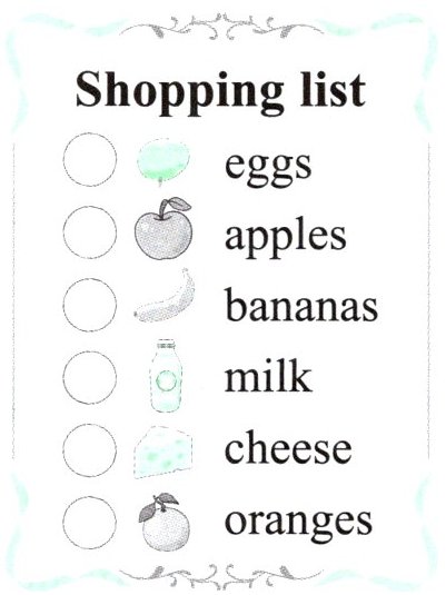 任务二:〔新角度〕根据对话内容,在Peter和妈妈买的东西前的圆圈内画“√”,完成购物清单。