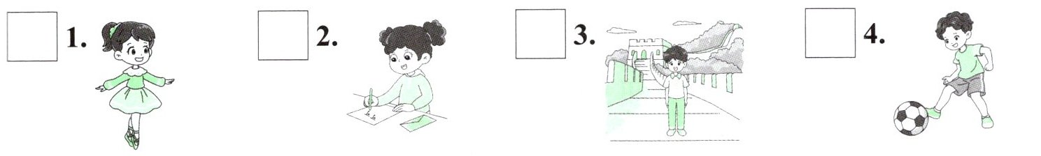 三、[新情境]Keke 正在向同学们介绍自己最近新交的几位笔友,下面是他们各自的照片。请为他们找到相应的文字描述,将序号填入方框内。