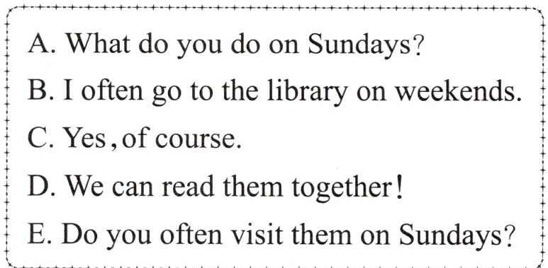 八、放学后,Lily 和 Mary 在讨论周末常做的事,她们都说了些什么呢?请读一读,选择合适的选项补全对话,将序号写在横线上。(10 分)