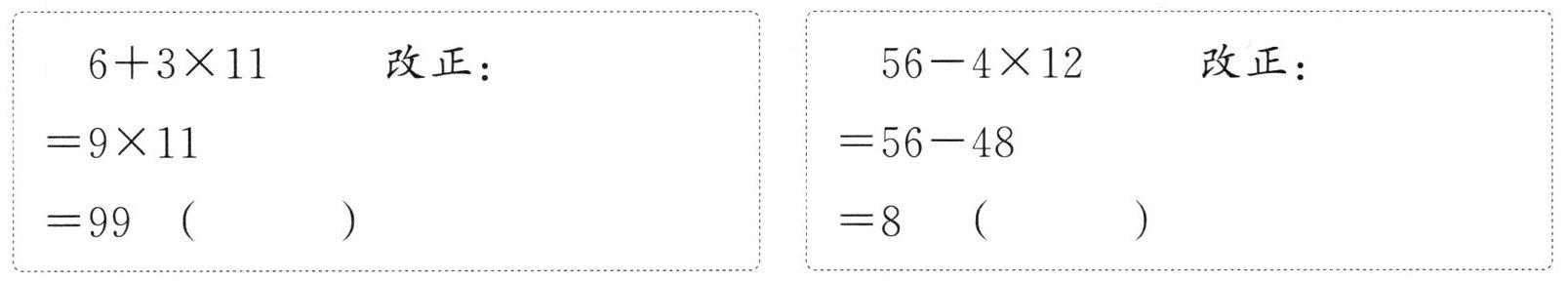 2 下面的计算对吗?对的画“√”,错的画“×”并改正。