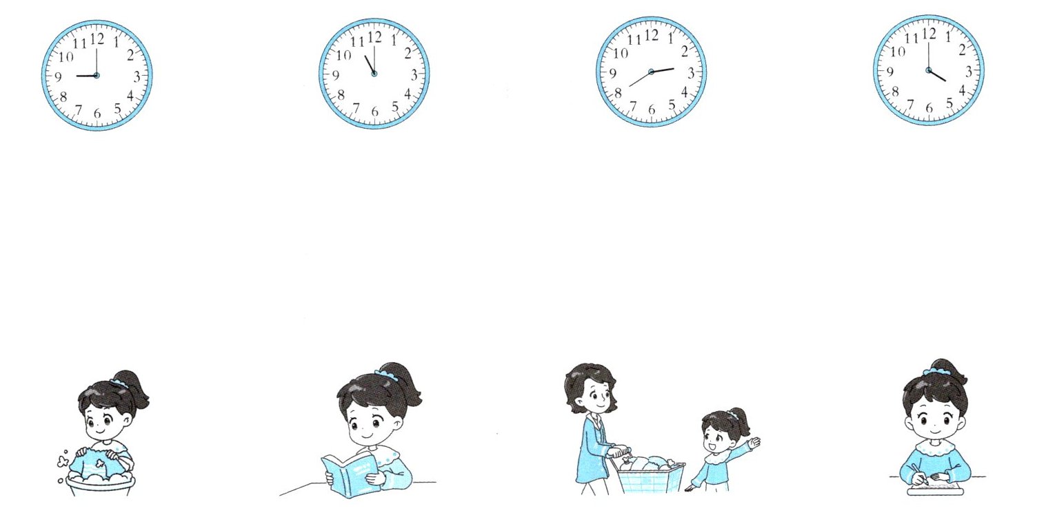 (3)下面这些时刻小梅在做什么?连一连。