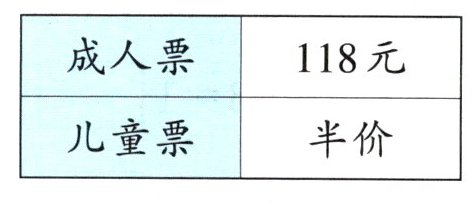 【解析】成人票每人118元,儿童票半价,一共有4名成人和2名儿童。因为2名儿童都是半价,所以这2名儿童的票价可以看成1名成人的票价,所以一共需要的钱数相当于5张成人票的票价,为118×5=590(元)。