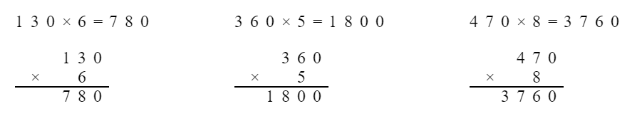 $ 130×6= $ $ 360×5= $ $ 470×8= $
