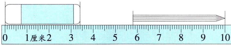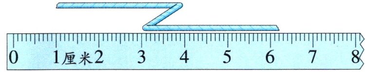(3)C【解析】观察题图可知,现在绳子的一端和“1厘米”对齐,另一端和“6厘米2毫米”对齐,所以现在的长度是6厘米2毫米 - 1厘米 = 5厘米2毫米。其中折叠的部分(如下图),拉直后它的长度会增加大约2厘米,即5厘米2毫米 + 2厘米 = 7厘米2毫米。