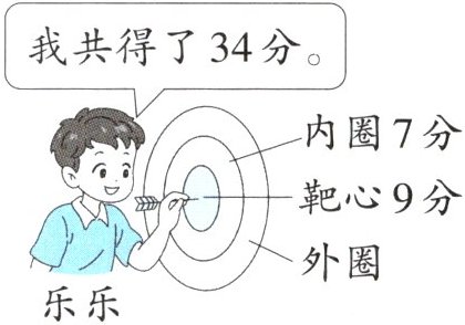 (2)9-25÷5=4(分)答:投中1次靶心比投中1次外圈多得4分。