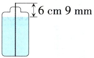 18 1 【解析】图中的小棒长度是25厘米,水面距离小棒顶端是6厘米9毫米,所以水深25厘米-6厘米9毫米=18厘米1毫米。