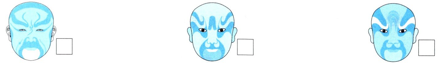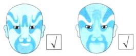 1 [中华优秀传统文化]脸谱是戏曲中某些角色脸上画的各种图案,用来表现人物的性格和特征。下面脸谱图案中,是轴对称图形的在□里画“√”。