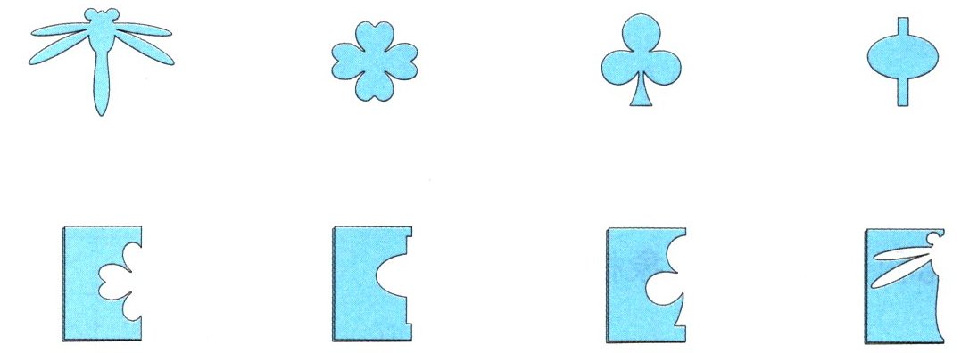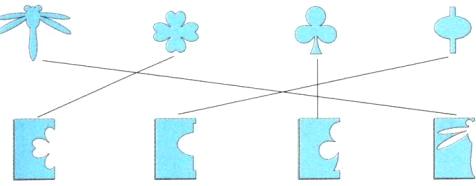3 下面的图案各是从哪张对折后的纸上剪下来的? 连一连。