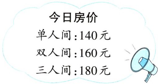3 [杭州市]开心旅行社组织一批游客到西柏坡纪念馆参观,晚上统一安排住宿。下图是房价信息。请你算一算,住哪种规格的房间比较合算?