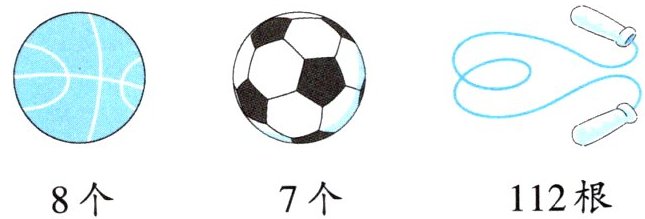 4 王老师为学校购进了一批新的体育器材(如下图),买每种体育器材用的钱同样多。如果每根跳绳6元,那么每个篮球多少元?每个足球多少元?