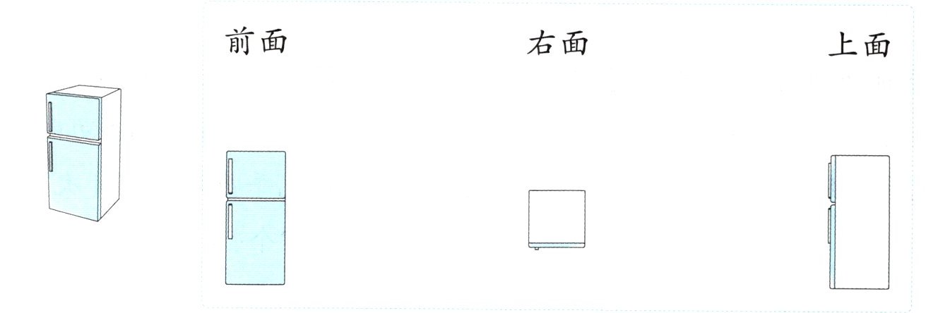 2. 下面的冰箱,从前面、右面和上面看到的分别是哪个?连一连。