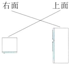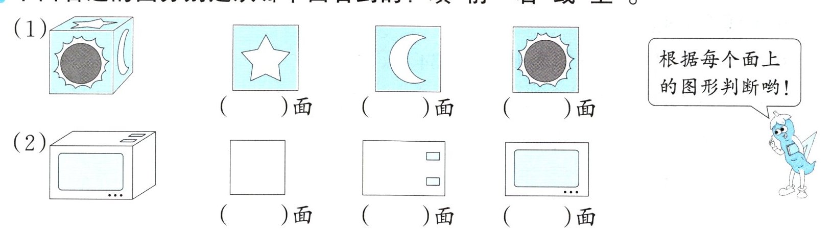 1. 下面右边的图分别是从哪个面看到的?填“前”“右”或“上”。