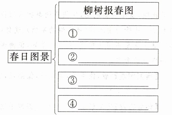 10. (☆课后习题一变式)在作者笔下,春天就像一幅幅美丽的图画。阅读文章,说说作者描绘了哪些春天的图景,完成思维导图。(4分)