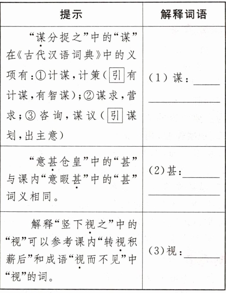 12. 请参考提示解释加点词语。