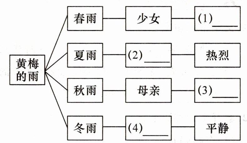 6. 文中四季之雨,“容貌”有别,“性情”各异。请你认真阅读,将下图补充完整。(4 分)