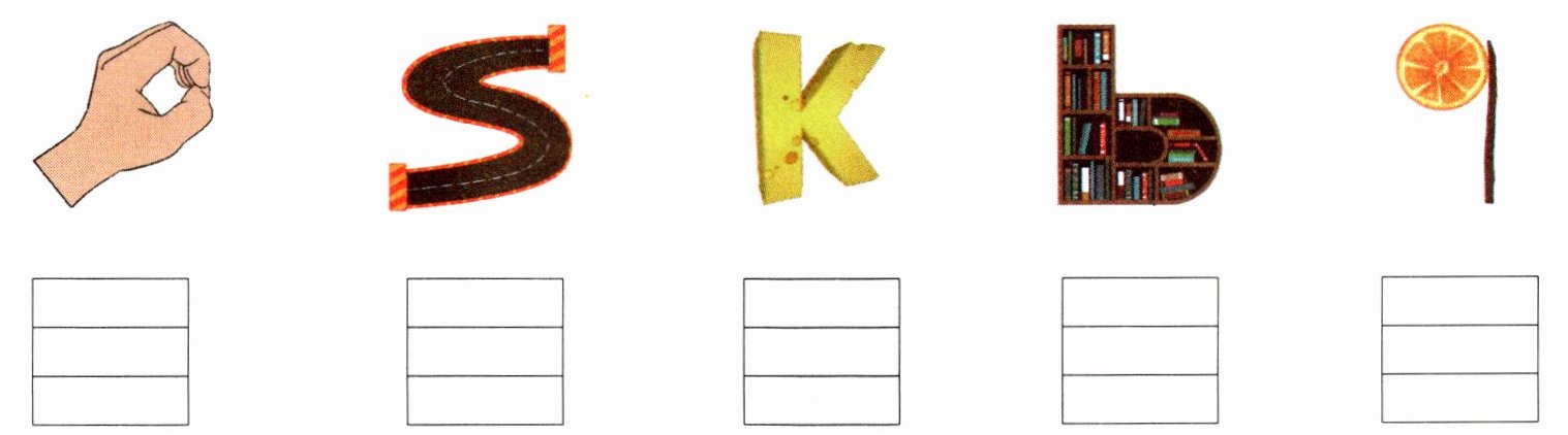 猜猜摆的都是什么字母?写下来,再学着做一做、摆一摆。