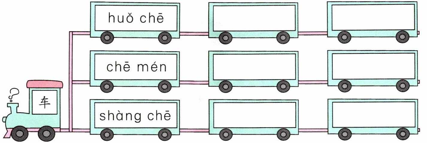 示例:qì chē dòng chē chē dēng chē xiāng xià chē zuò chē
