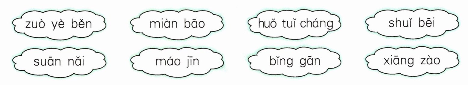 示例:选择“huǒ tuǐ cháng”,在其对应位置涂上喜欢的颜色。