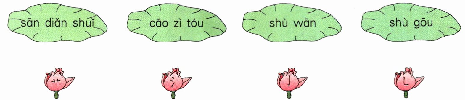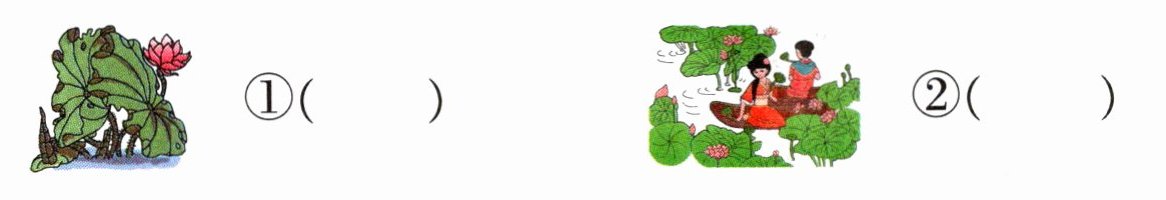 1. 下面哪幅图表达了“江南可采莲”的意思?打上“√”。