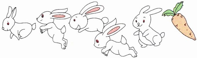 一蹦一跳学跑步,比比看谁跑第一,奖它一根胡萝卜。