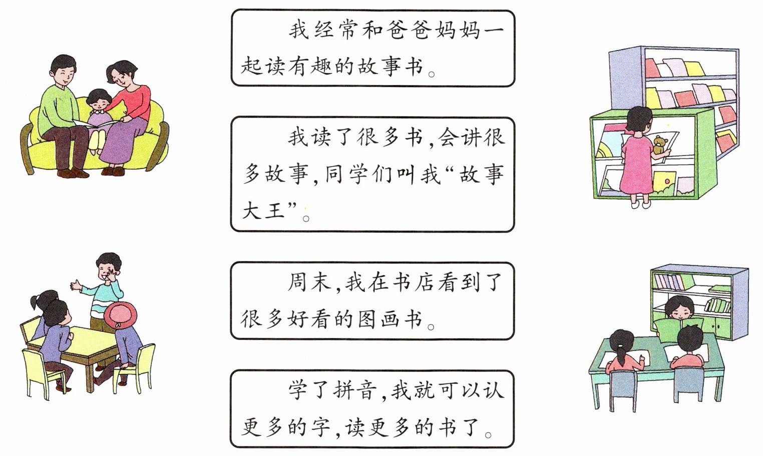 和大人一起读一读,回答问题。