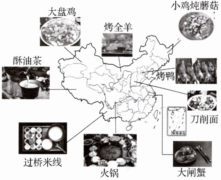 10.下图为我国不同地区的特色美食地图,它从饮食文化角度反映出了我国各地自然环境和农业分布的特点。图中美食特色与我国农业分布或自然环境契合的是 (