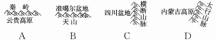 4.山脉常常成为我国省级行政区域单位的天然分界线。对下列四幅示意图中山脉名称的判断,正确的是 (