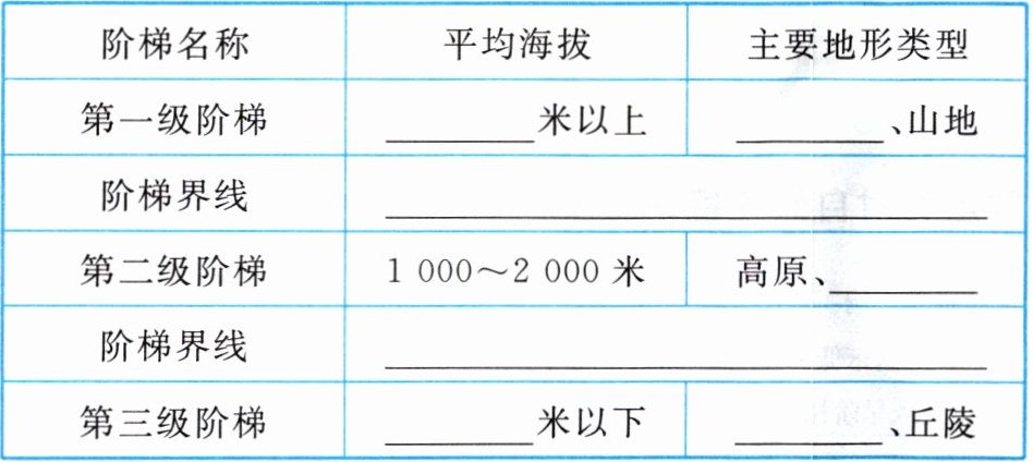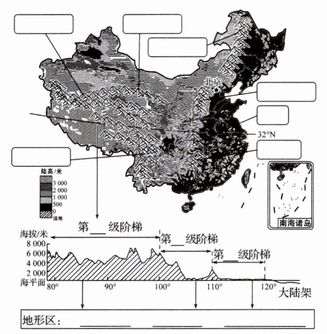 .运用中国地势三级阶梯示意图和地形剖面图,概括