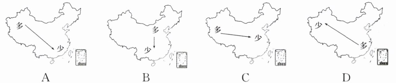 C.自东南沿海向西北内陆递减 D.自东南沿海向西北内陆递增