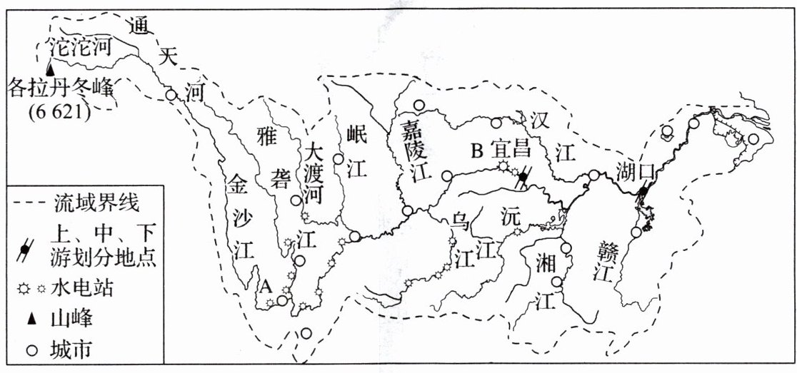 (3)B B处以上河段比A处以上河段沿途汇入更多支流,流量更大(言之有理即可)