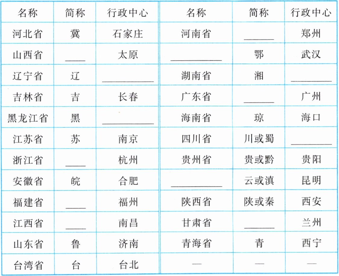 省(自治区、直辖市)______ .在中国政区图上准确地找出34个省级行