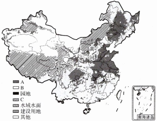 (1)耕地:主要分布在东部季风区的