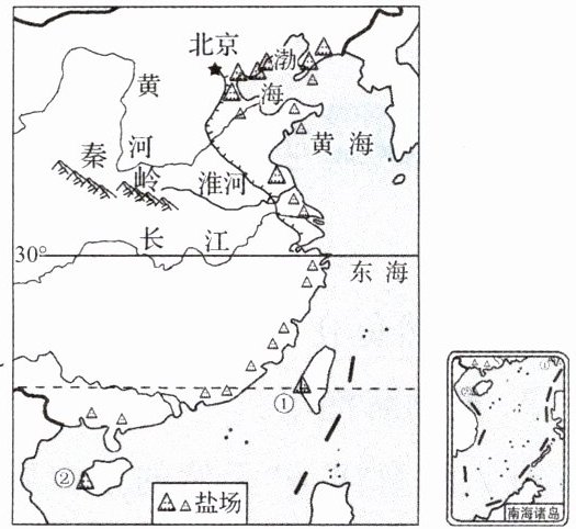 根据图中①②盐场的位置,结合气候、地形因素分析两大盐场选址的影响因素。