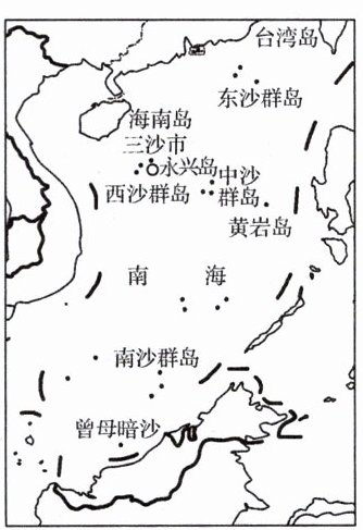 (2024.海南学业考)深耕海洋经济,“向海图强”,加快建设“南海粮仓”,是海南省加快迈向海洋强省的重要工作。读我国部分海域示意图,完成3~4题。
