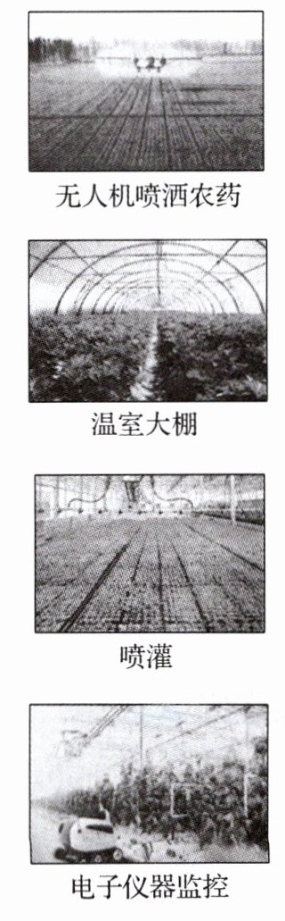 现代农业技术包括无人机喷洒农药、温室大棚、喷灌、电子仪器监控等,这些技术的应用提高了农业生产效率,节约了资源,实现了精准化管理,促进了农业现代化发展。
