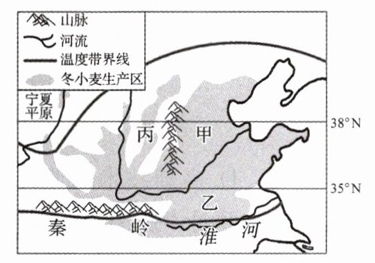 旬播种,翌年5月底至6月中下旬成熟。下图示意我国冬小麦主产区分布及冬小麦生长习性,某收