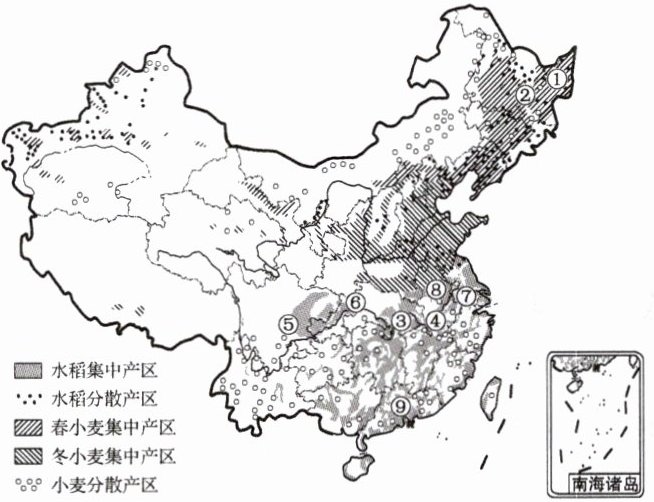 。长江中下游平原、四川盆地主要粮食作物是水稻