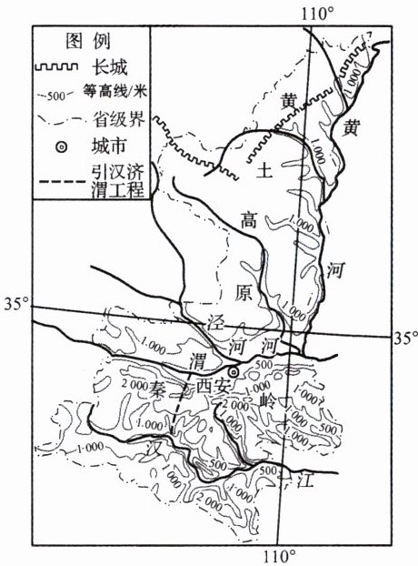①地形:以平原为主,土壤肥沃。②气候:雨热同期,有利于农作物生长。③水源:渭河、泾河流经,水源充足。