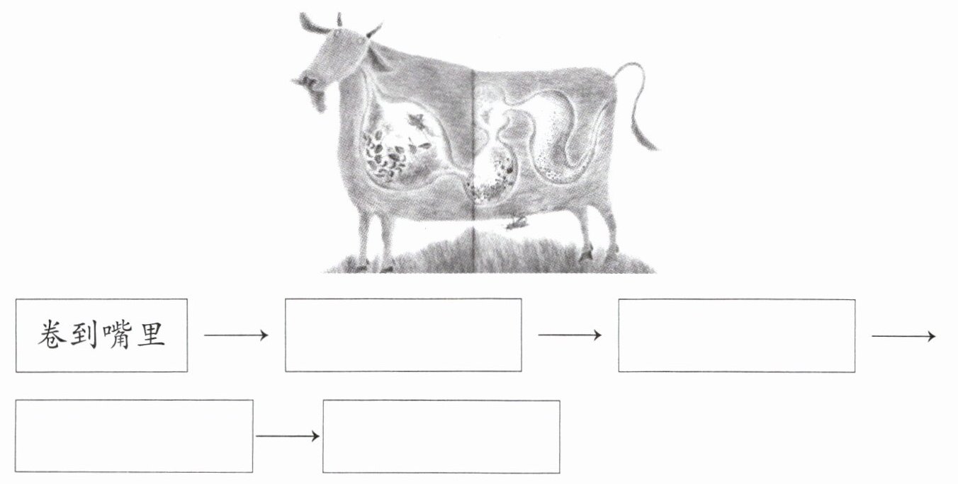 2. 根据课文《在牛肚子里旅行》,完成练习。