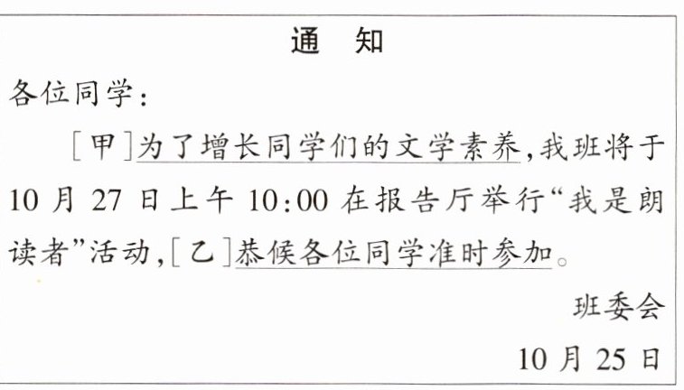 (1)【朗读活动我通知】活动开始前,小明同学拟写了一则通知,请你按要求帮他修改。