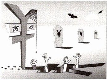 示例:贪欲——人生的陷阱 [解析]本题考查图文转换。给漫画拟写一个合适的标题,可以根据内容或主旨来拟写。看图可知,图中文字为“贪欲”,下方是一个陷阱,人一旦走到贪欲之下,就会被无数双手拉入陷阱当中,据此拟写标题即可。语言要简洁生动,点明主旨,注意字数限制。