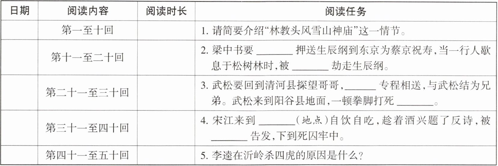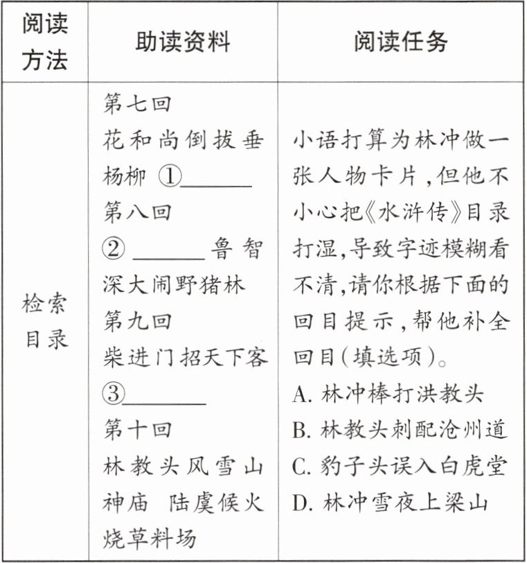 1. 个性化阅读方法 阅读《水浒传》,完成下面的任务。