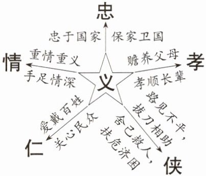 (3)示例:武松重情重义,手足情深。为了给哥哥武大郎报仇,他心思缜密,历尽艰辛,斗杀西门庆,恨杀潘金莲,手刃仇人。为此他惨遭流放,但在所不惜,非常讲“义”。