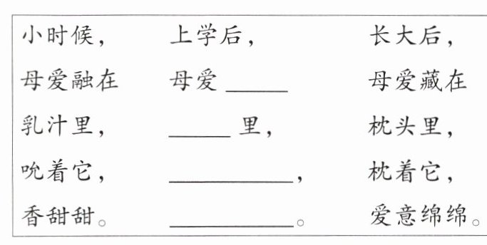 5. 小文借鉴《乡愁》的写法,写了下面这首小诗。请你帮忙补写空缺内容。