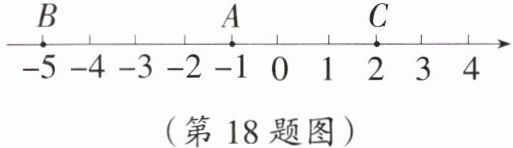 18. (12分)如图,已知点A,B,C在数轴上表示的数分别是$-1,-5,2$.回答下列问题: