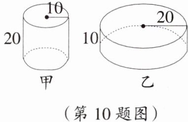10. 数形结合思想 如图,有甲、乙两个容器,甲容器盛满水,乙容器里没有水,现将甲容器中的水全部倒入乙容器,问:水会不会溢出? 如果不会溢出,请你求出倒入水后乙容器中的水深;如果会溢出,请你说明理由.(容器壁厚度忽略不计,图中数据的单位:cm)