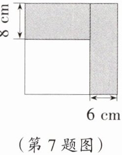 7. 习题变式 教材147,T5改编 如图,将一个正方形纸片剪去一个宽为6cm的长条后,再从剩下的长方形纸片上剪去一个宽为8cm的长条,如果两次剪去的长条的面积正好相等,那么每一个长条的面积为 (